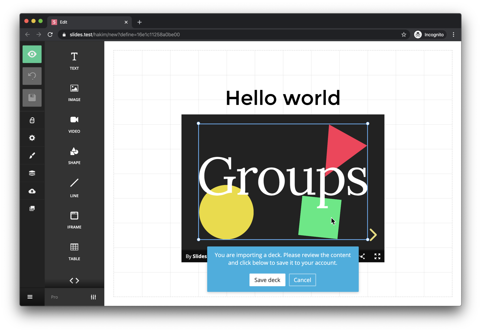Slides is a presentation platform for developers. We're built on top of the reveal.js open source presentation framework, which was created by our co-founder.
