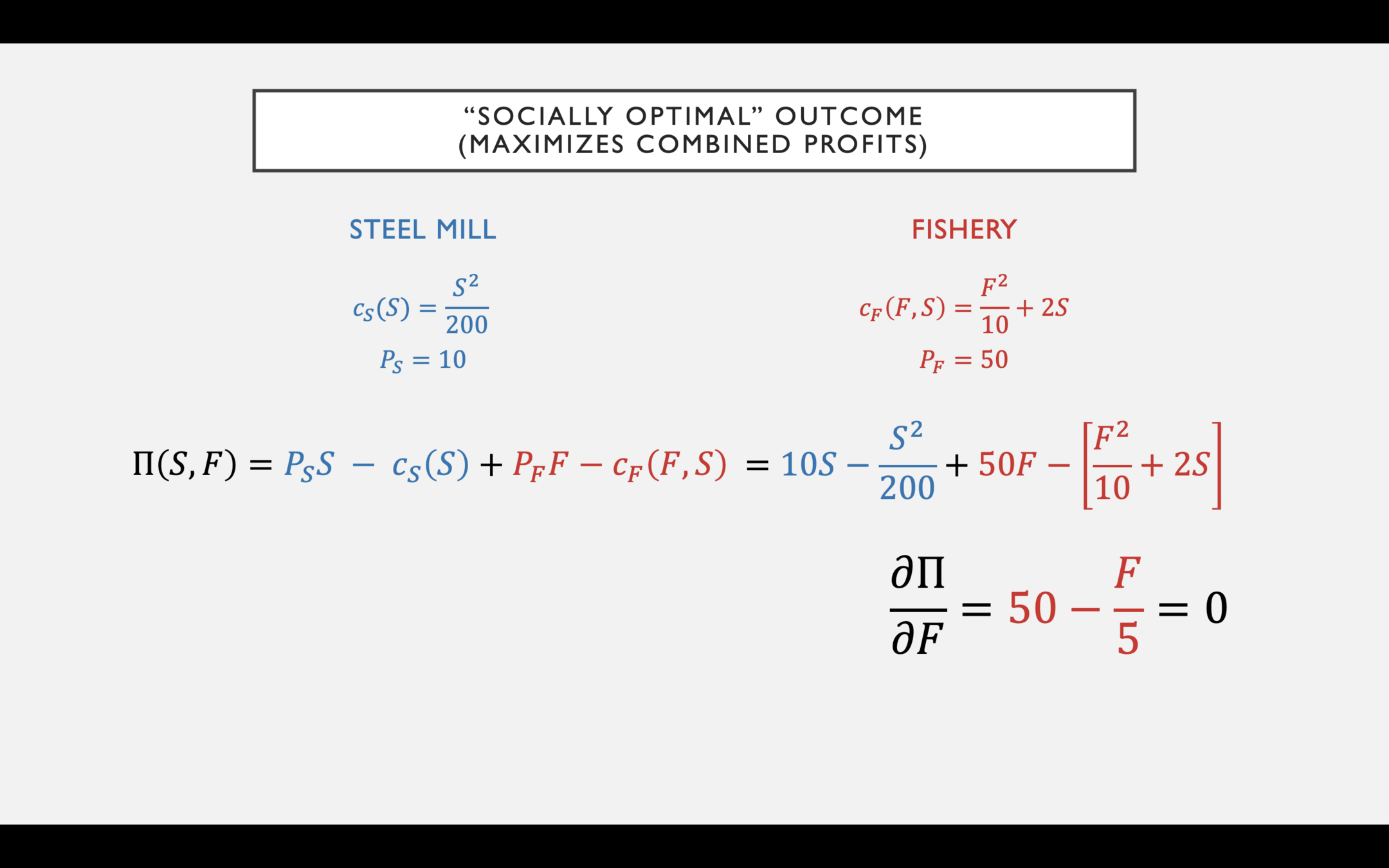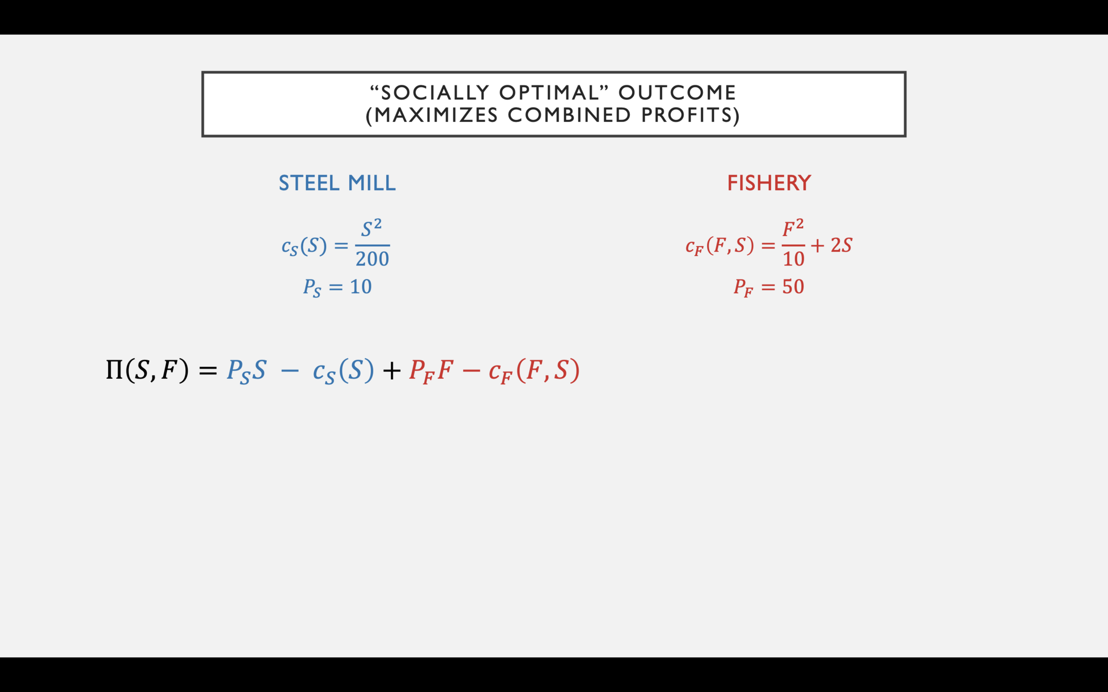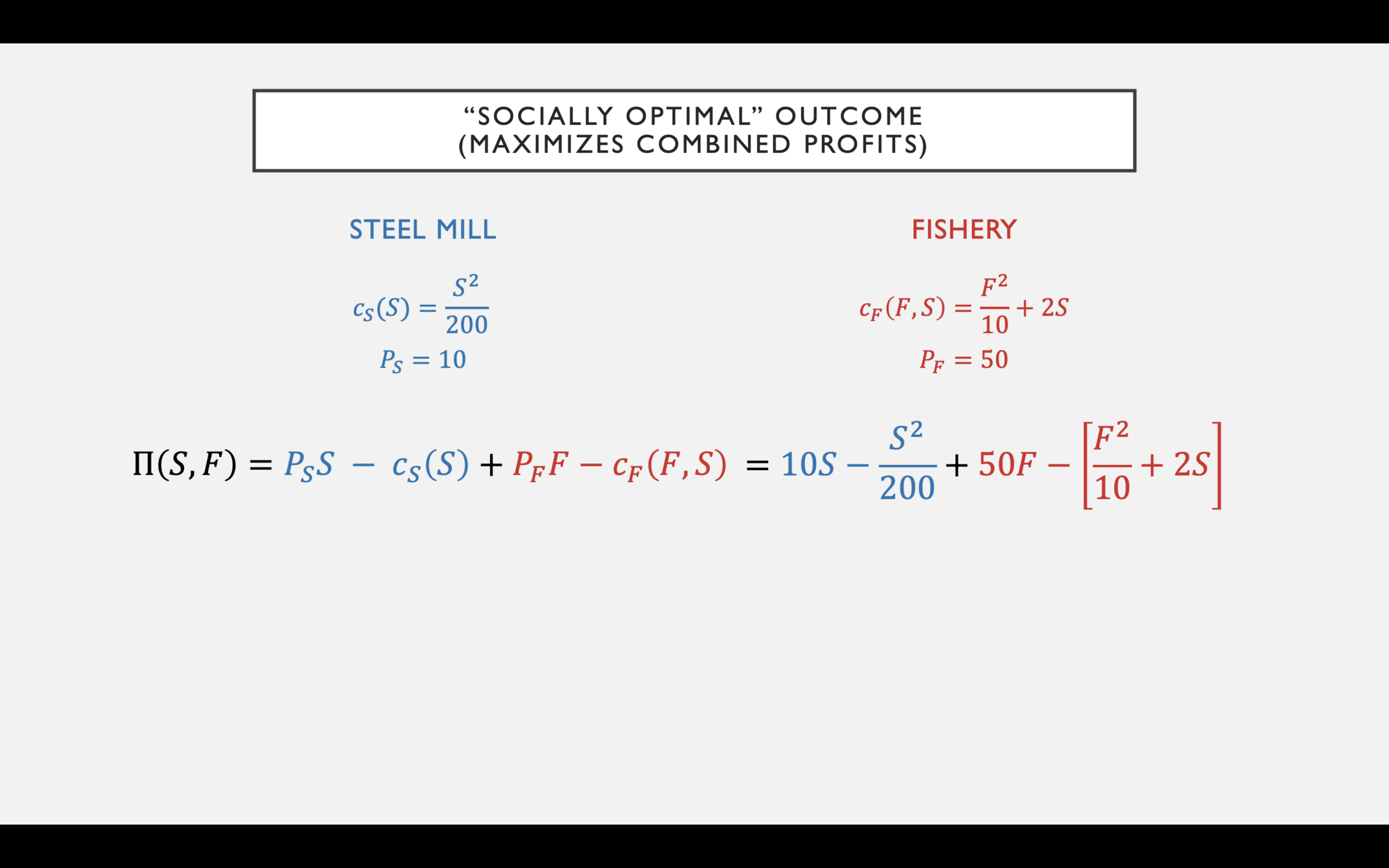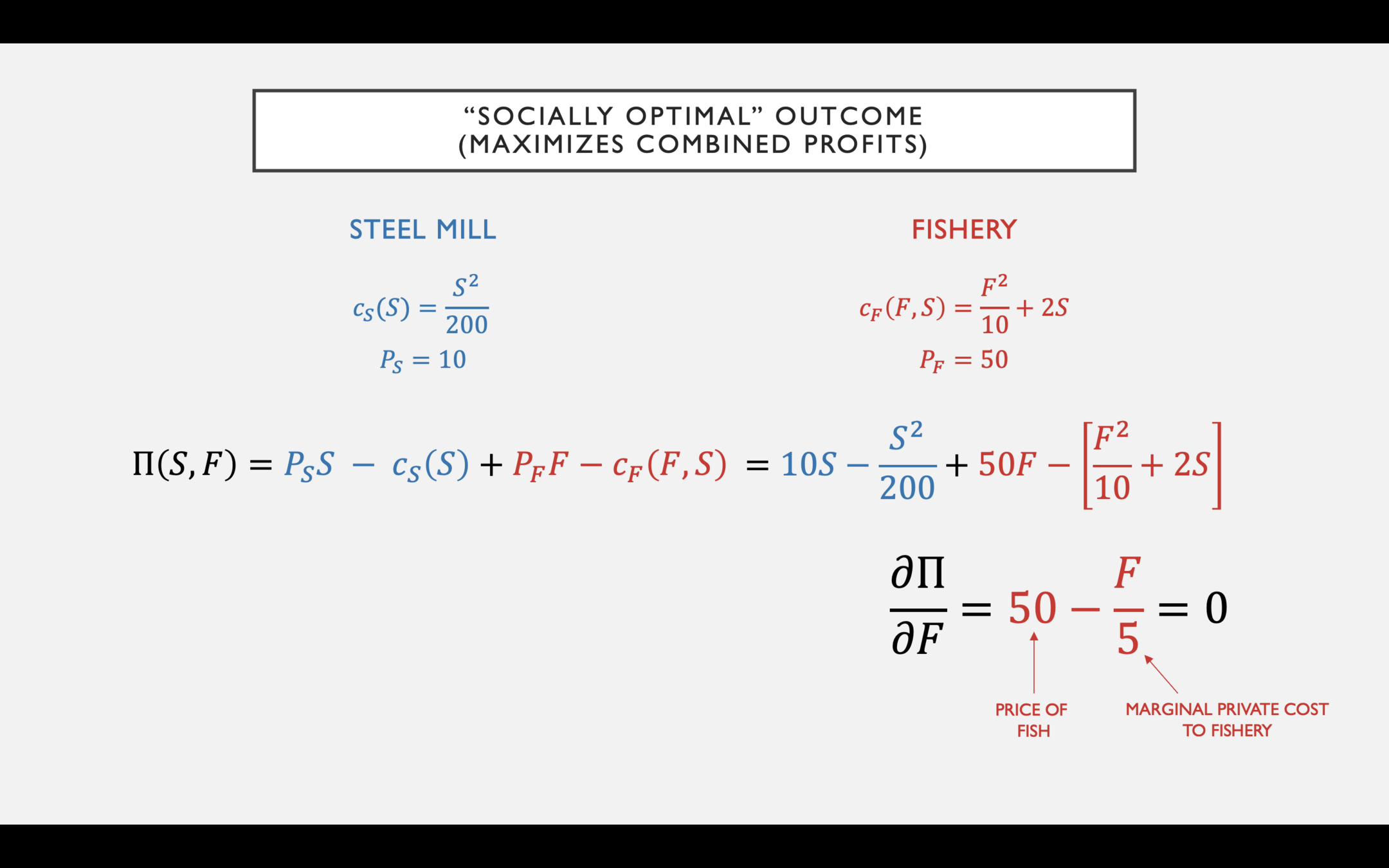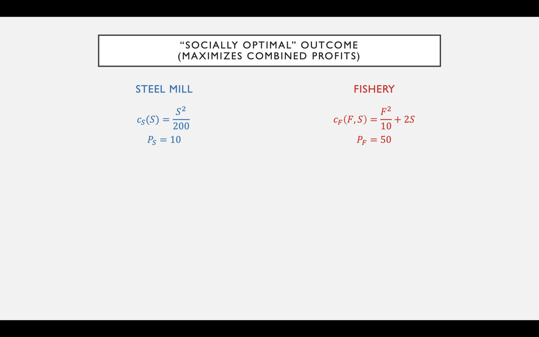 Ronald Coase's insight: we can achieve the optimal quantity via negotiation if we assign property rights to the firms.