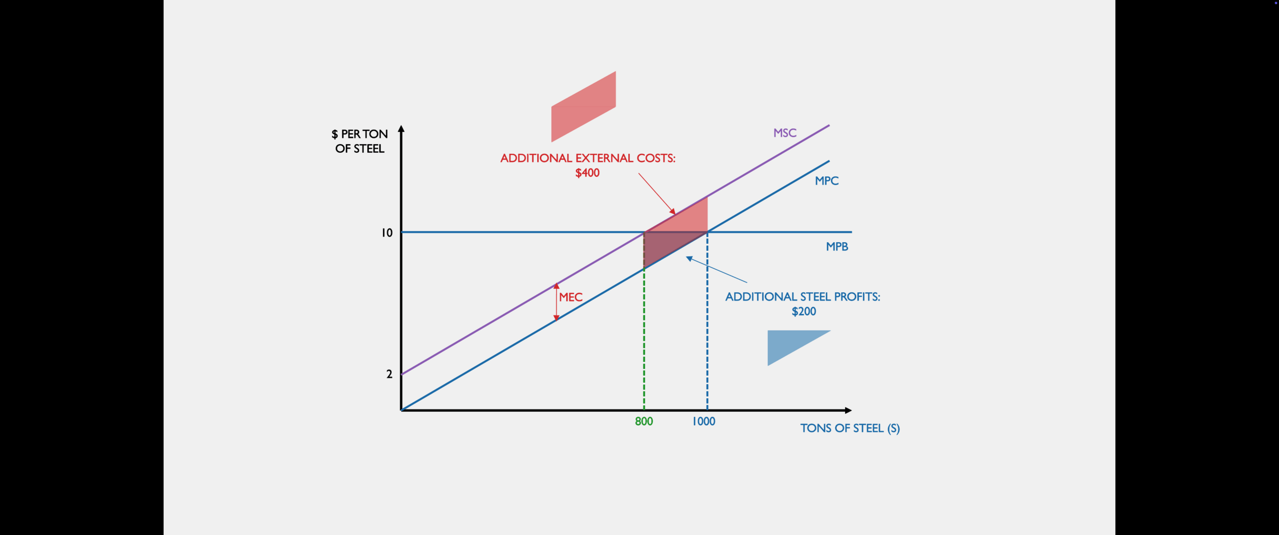 disregard the external effects they have on others - Marginal social cost (MSC) = marginal private cost (MPC) + marginal external cost (MEC)