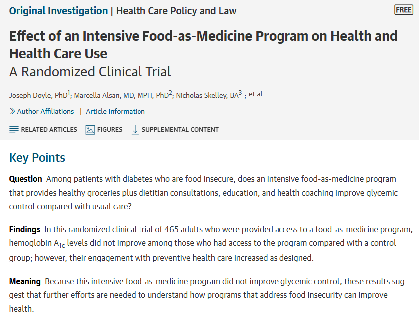 Source: ABC News. Ohio Health family practice partnering with local food banks to provide nutrition support. Costs ~$7 per person.