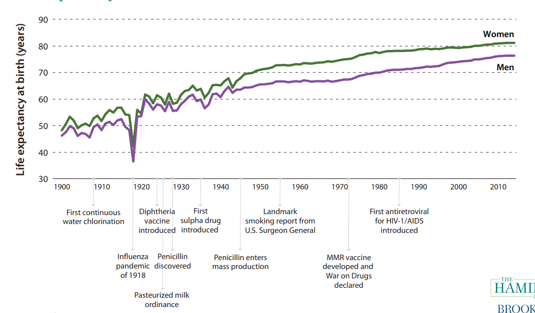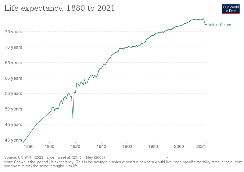 - Life expectancy 1900: 47.3 years