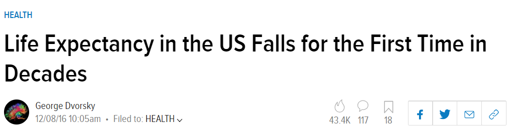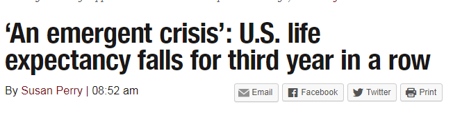 Case and Deaton PNAS 2015: document rising mortality rates among those with low levels of education.