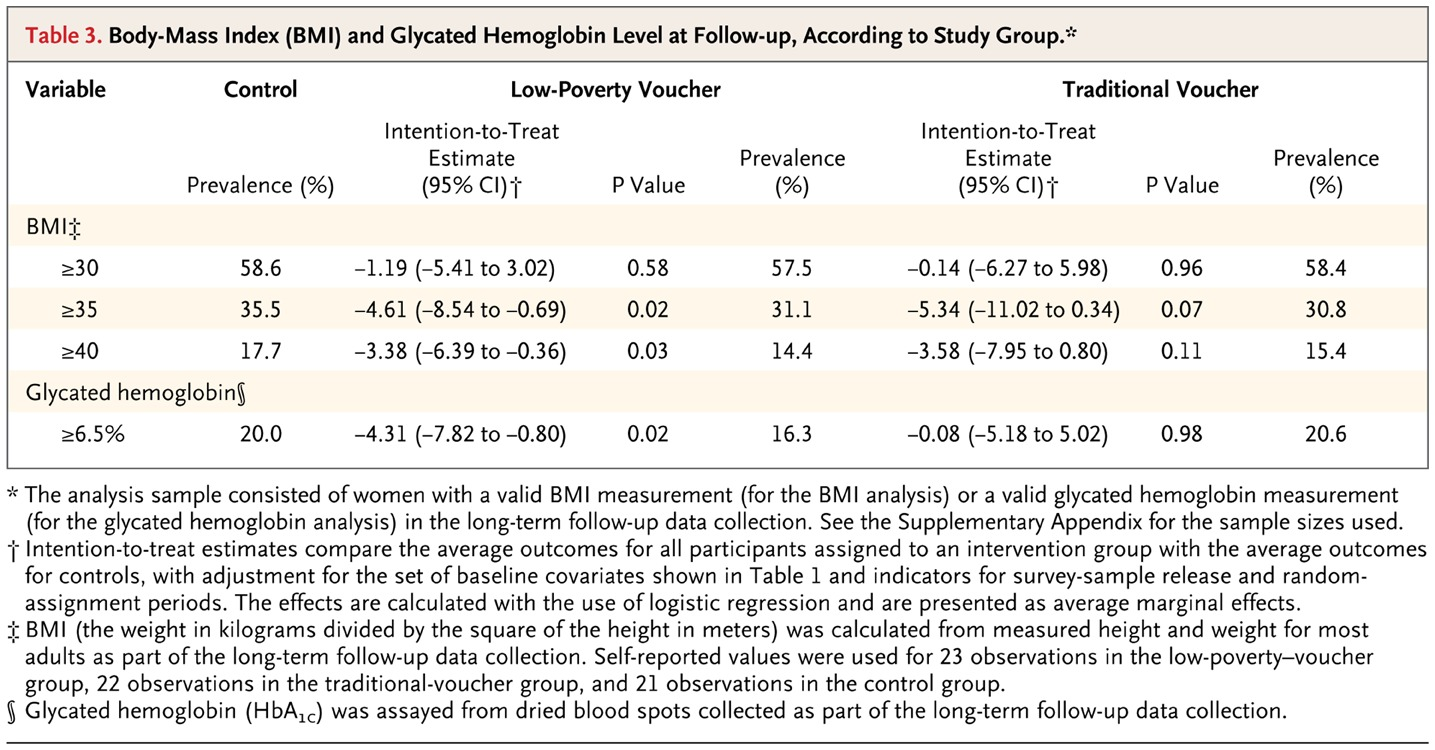 There were other beneficial effects (like better parenting, more investment in kids, better credit outcomes) but results for health were disappointing.