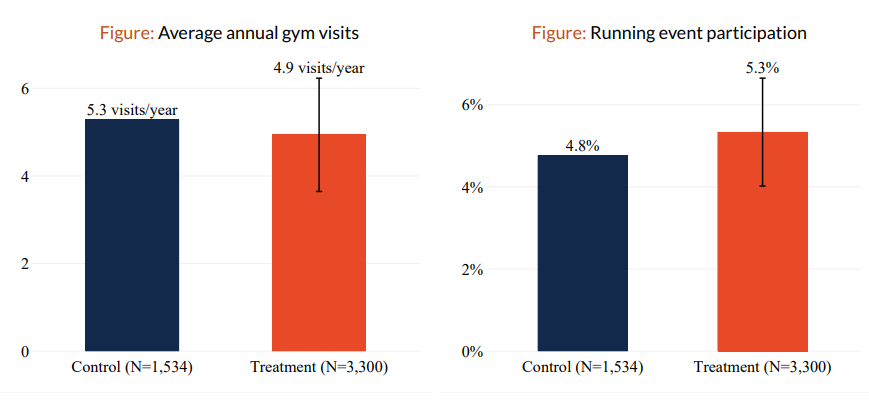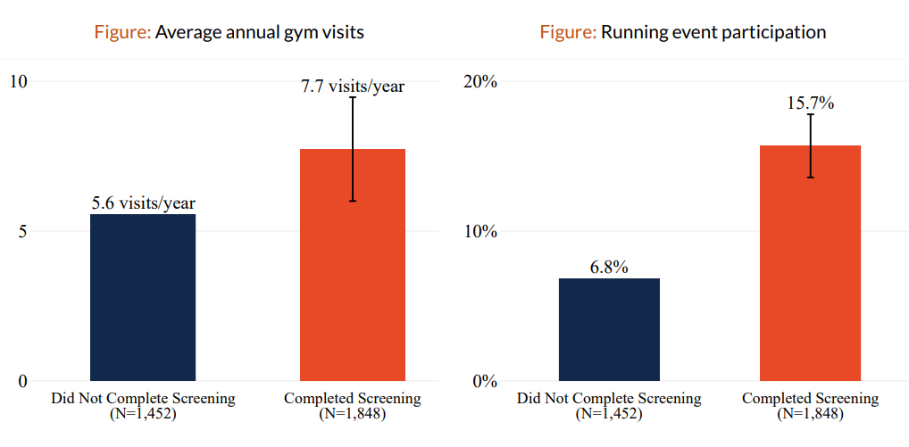 Authors find that previous literature looking at differences across wellness plan participants and non-participants was driven by selection, i.e. those who choose to participate in a wellness program tend to be healthier anyway.