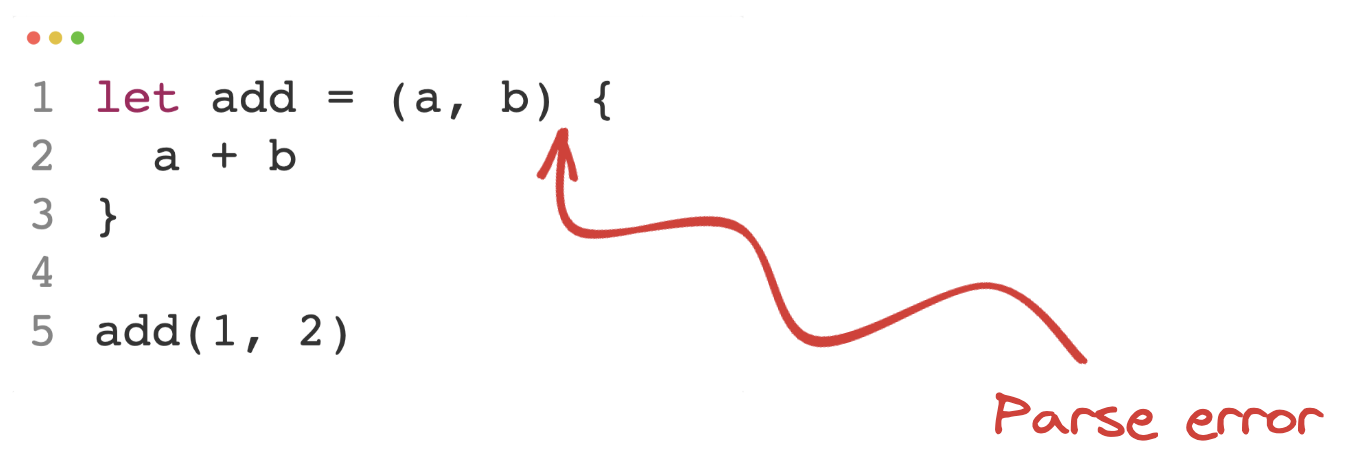 let add = (a, b) {