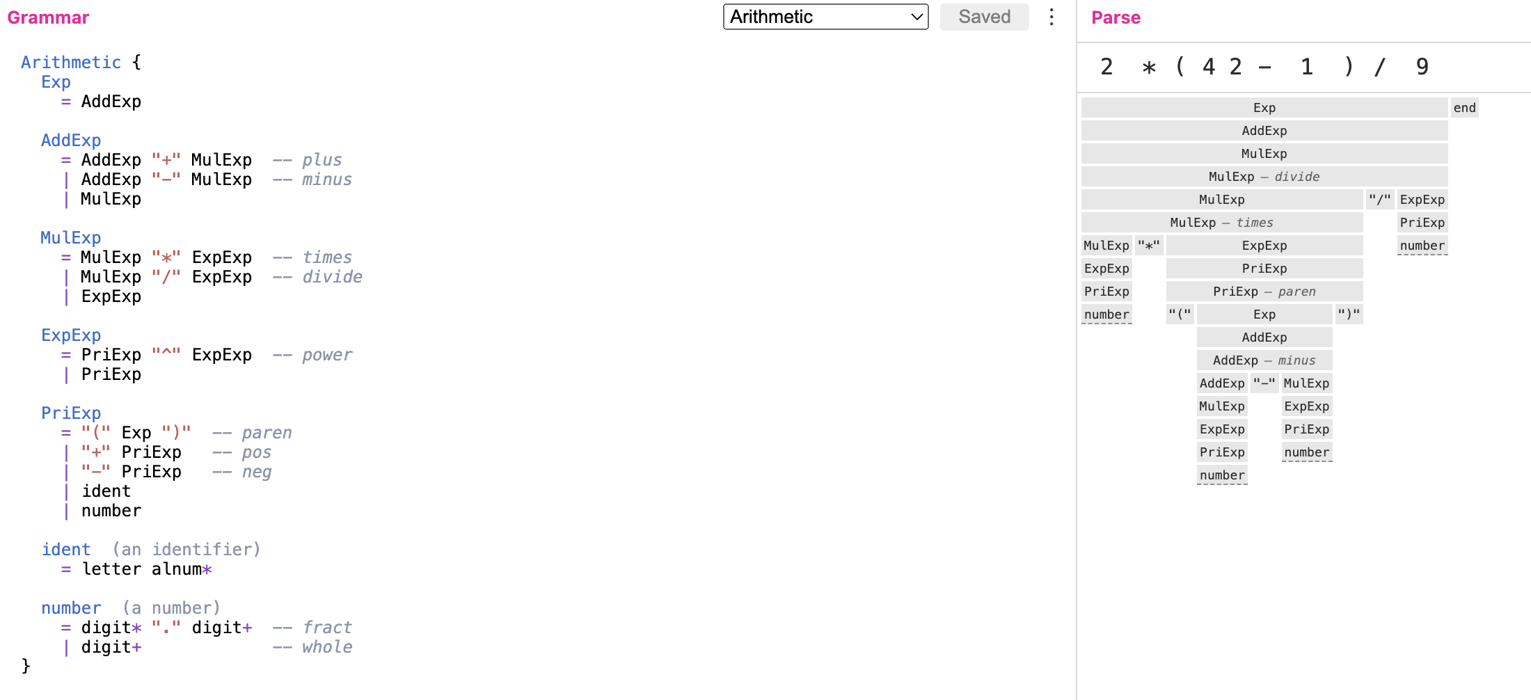 <MultiplicativeExpression> ::= <PowerExpression> ('*' <PowerExpression> | '/' <PowerExpression>)*