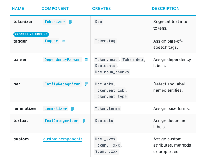 >>> print("Pipeline:", nlp.pipe_names)