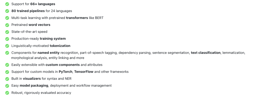 python -m spacy download en_core_web_smMultiple features under the hood
